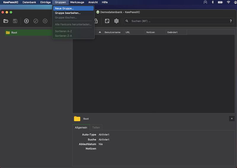 Anschließend können Sie innerhalb der Gruppen Einträge anlegen. Hierfür gibt es zwei Möglichkeiten: