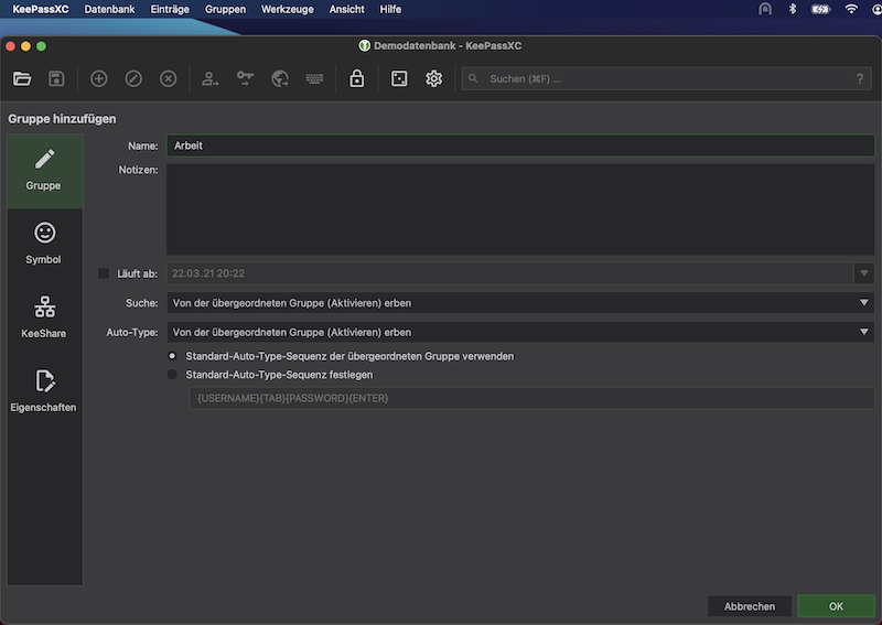 Wenn Sie eine Gruppe angelegt haben, sollten Sie diese benennen.