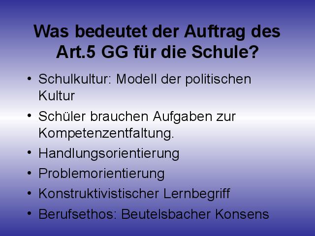 Was bedeutet der Auftrag des Art.5 GG für die Schule?