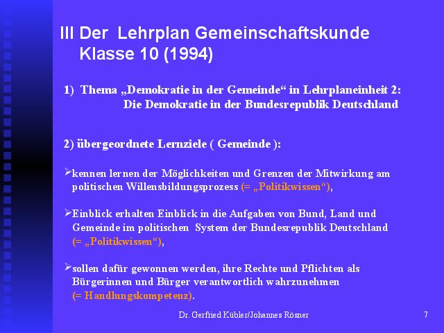 III Der Lehrplan Gemeinschaftskunde Klasse 10 (1994)