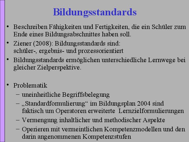 Diese Seite ist Teil einer Materialiensammlung zum Bildungsplan 2004: Grundlagen der Kompetenzorientierung. Bitte beachten Sie, dass der Bildungsplan fortgeschrieben wurde.