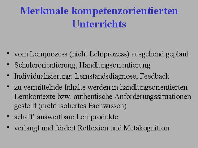 Diese Seite ist Teil einer Materialiensammlung zum Bildungsplan 2004: Grundlagen der Kompetenzorientierung. Bitte beachten Sie, dass der Bildungsplan fortgeschrieben wurde.