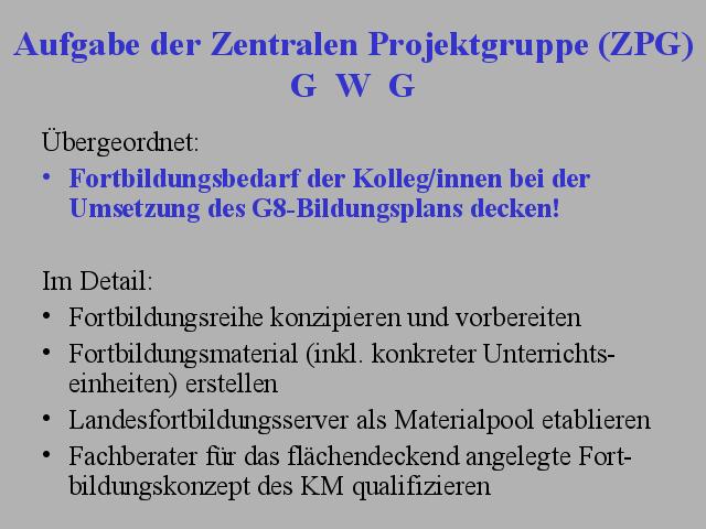 Aufgabe der Zentralen Projektgruppe (ZPG) G W G