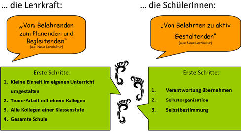 vgl.: Neue Lernkultur. Beobachten – Beschreiben – Bewerten – Begleiten. Lernen im Fokus der Kompetenzorientierung. Individuelles Fördern in der Schule. Landesinstitut für Schulentwicklung; Stuttgart 2009