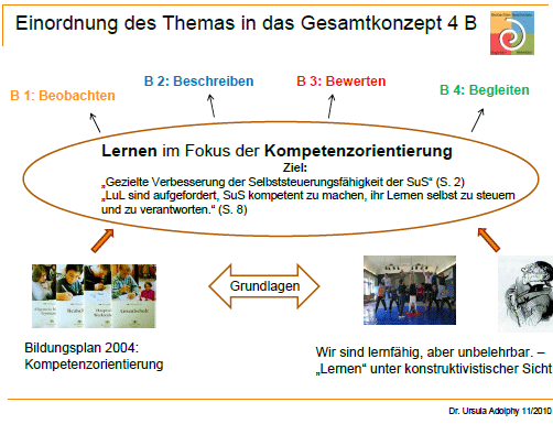 - Übersicht: Lernen im Fokus der Kompetenzorientierung Beobachten - Beschreiben - Bewerten - Begleiten
