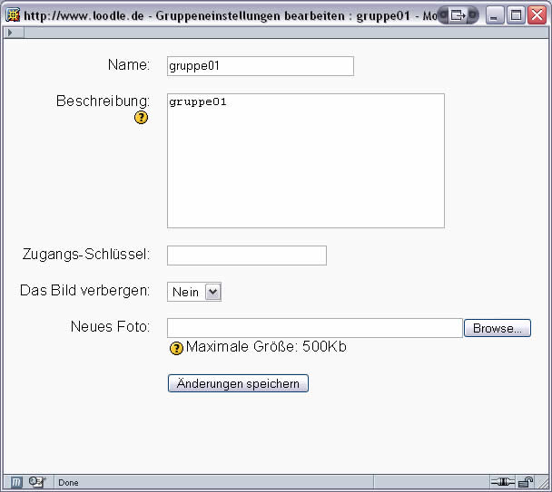 Einstellungen für die jeweiligen Gruppen (es handelt sich um das anzuzeigende Gruppenicon und eine Beschreibung der Gruppe) nehmen Sie vor, indem Sie auf [Gruppeneinstellungen bearbeiten] unter dem mittleren Listenfeld klicken. Hier können Sie auch den Namen der Gruppe verändern.