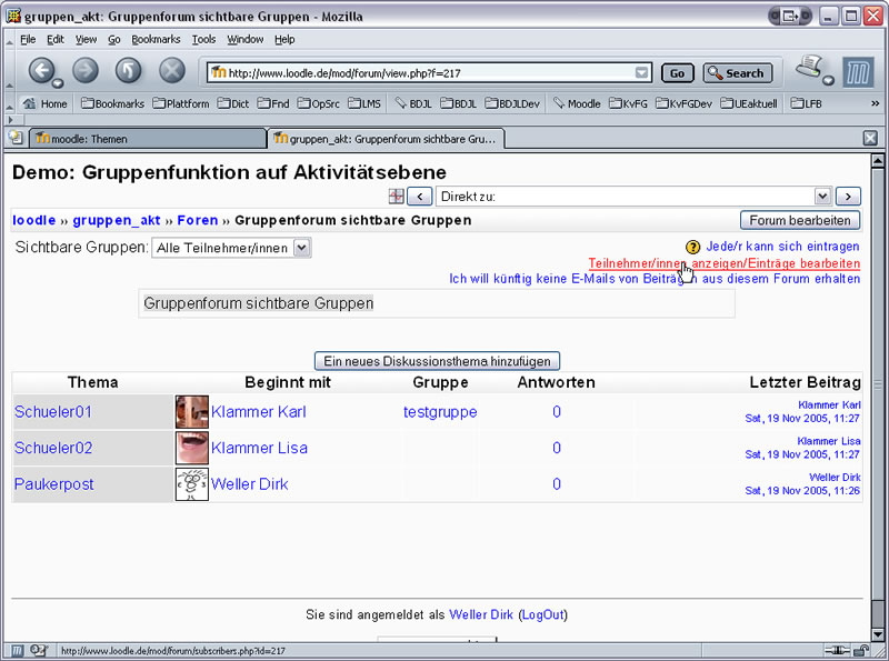 Klicken Sie hierzu in einem Forum auf [Teilnehmer/innen anzeigen / Einträge bearbeiten]