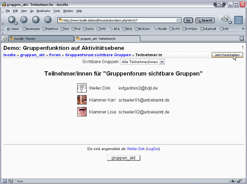 Klicken Sie hier [Jetzt bearbeiten] um die Zuordnung zu den Gruppen zu verändern.