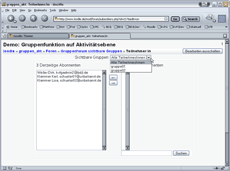 Wenn Sie Gruppen auf Aktivitätsebene z.B. für ein Forum eingerichtet haben, dann können Sie auch über dieses direkt zur Gruppenverwaltung gelangen.