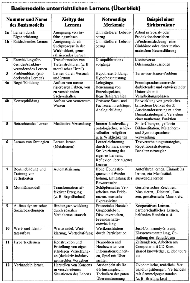 untersuchten "Basismodelle des Unterrichts", die für ihn