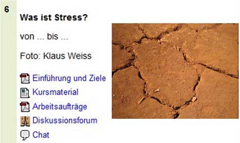 Fast alle Themenbereiche dauern ca. zwei Wochen und enthalten folgende Elemente: