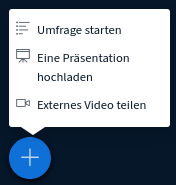 Als Präsentator_in kann man die Präsentationsfunktionen von BBB nutzen.