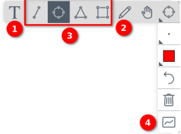Neben der Möglichkeit, Anmerkungen auf dem Whiteboard zu schreiben (mit der Tastatur ❶ oder Freihand ❷), kann man auch einfache geometrische Formen zeichnen ❸.