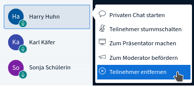 Für grobes und nachhaltiges Fehlverhalten während einer Konferenz gibt es eine technische ultima ratio: Konferenzteilnehmer_innen können aus der Konferenz entfernt werden.