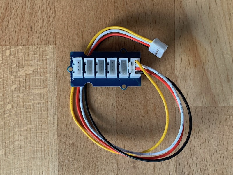 Ein Hub ist eine Art Mehrfachsteckdose. Er ermöglicht mehrere Bauteile gleichzeitig zu betreiben und mit so wenig Kabeln wie möglich untereinander zu verbinden. Zum Einsatz kommt hier als Hub ein I2C-Datenbus aus dem Grove-System, um LC-Display und Sensor gleichzeitig an die Platine anzuschließen.