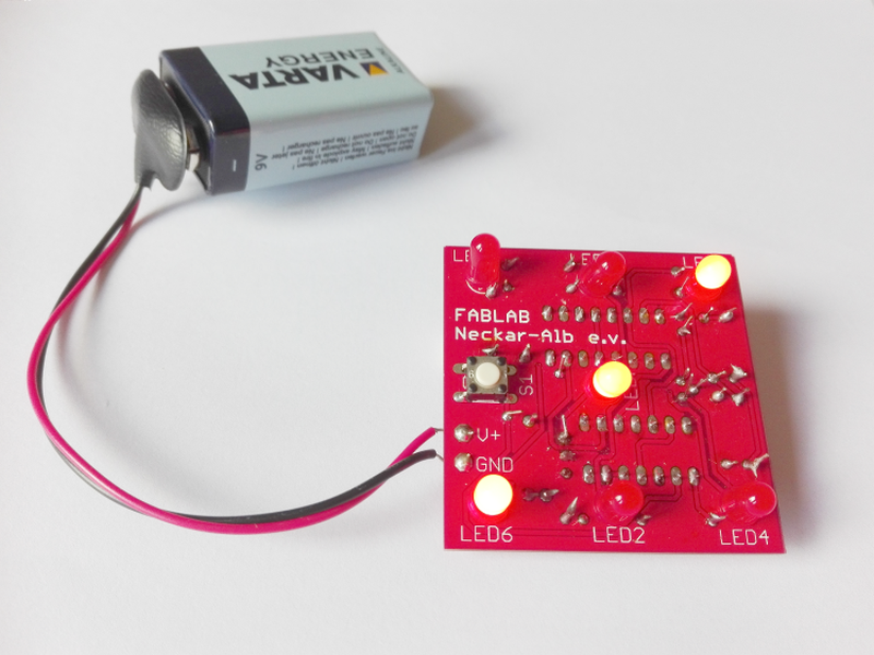 Elektronischer Würfel aus dem Basic-Workshop "Herbstliches Löten" am 25.10.2016 im FabLab Neckar-Alb