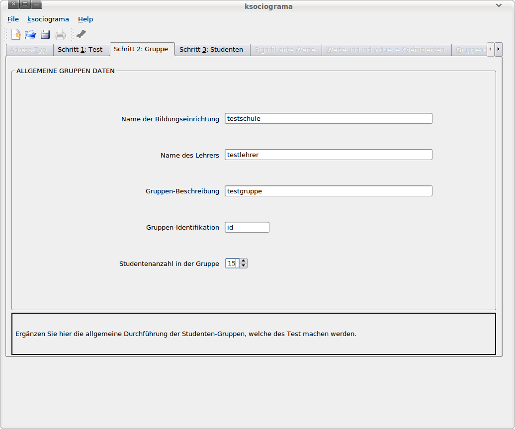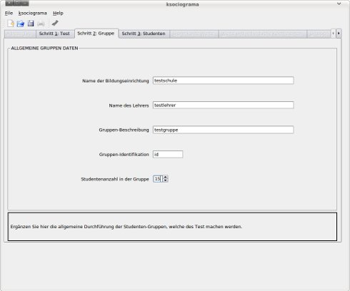Auf der zweiten Registerkarte tragen Sie die notwendigen Daten zu Ihrer Gruppe ein.