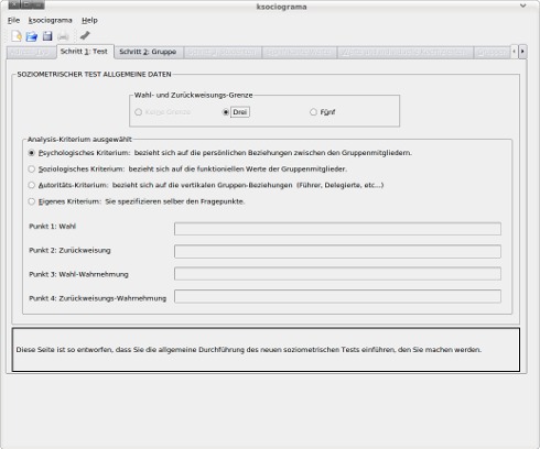 Was als Frage für die Wahl / Zurückweisung im Test erscheint, wird unter "Analysis-Kriterium ausgewählt" eingestellt.