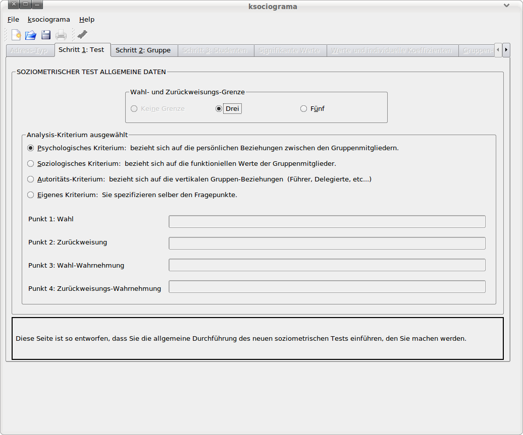 Hinweis : Beim Ausprobieren im Vorfeld Ihrer eigentlichen Untersuchung werden Sie auf dieser Registerkarte evtl. feststellen, dass die nächste Registerkarte ("Schritt 3: Studenten") sich nur dann freischalten lässt, wenn Sie die vorgegebene Zahl der Studenten um mindestens eins erhöhen.