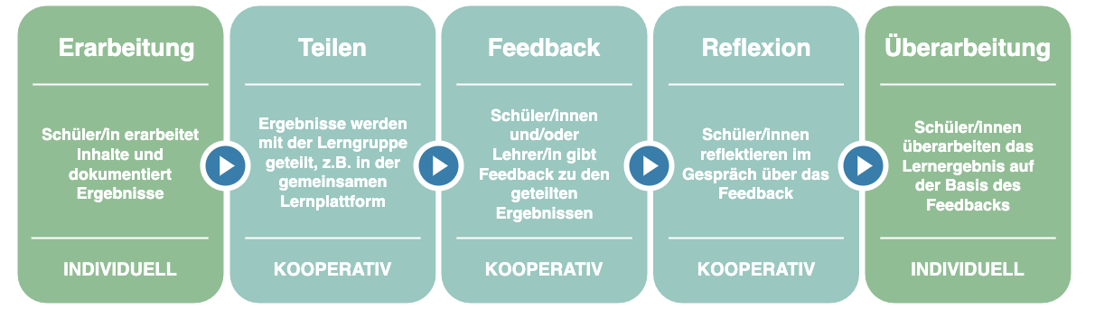 Kooperatives Lernen impliziert, dass man die Gedanken und Lernergebnisse von Anderen nutzt, sie verarbeitet und konstruktiv in das eigene Denken „einbaut“. Oft müssen diese Ergebnisse schriftlich oder visuell vorliegen, um das Lernen nachhaltig zu machen. Digitale Medien ermöglichen das flexible Erarbeiten und Festhalten von Ideen und Lernergebnissen und anschließend das Weitergeben an anderer Mitglieder der Lerngruppe. Nach gemeinsamer Reflexion können digitale Inhalte in der Regel auch noch einmal ohne allzu großen Aufwand überarbeitet werden, um die Erkenntnisse und Verbesserungsvorschläge einzuarbeiten, die man in der kooperativen Phase des Lernens erhalten hat.