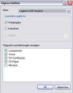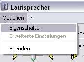 In der Lautstärkeregelung wählen Sie nun den Eintrag [Optionen] [Eigenschaften]. Ein neues Fenster wird geöffnet.