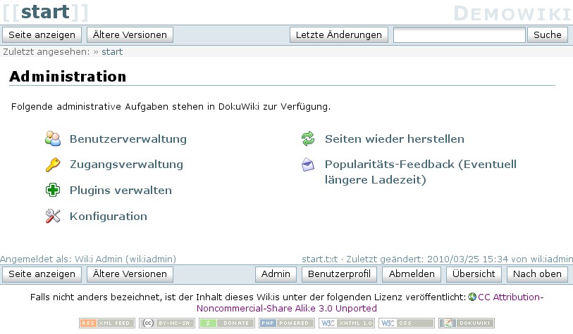 Klicken Sie in Ihrem Wiki auf den Schalter [Admin] und auf der Administrationsseite dann auf [Plugins verwalten].