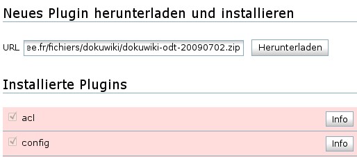 Kopieren Sie jeweils den Link zum PlugIn-Paket (meist handelt es sich um tgz oder zip Archive) und fügen Sie diesen in das Feld URL in der PlugIn-Verwaltung Ihres DokuWikis ein. Klicken Sie dann auf [Herunterladen], um das PlugIn zu installieren.