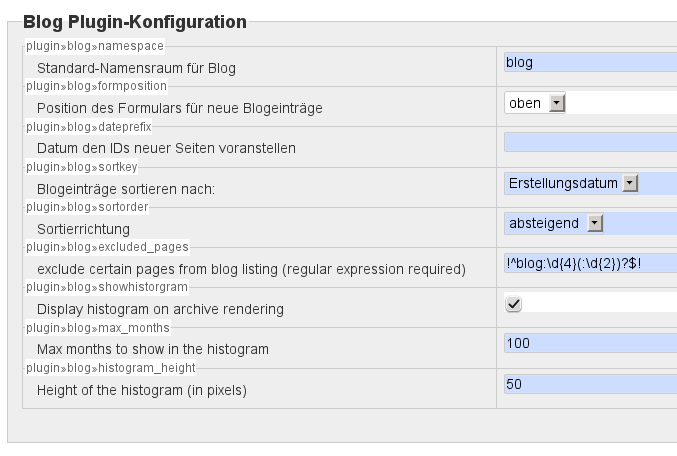 Auf der Konfigurationsseite finden Sie die Möglichkeit die installierten PlugIns und das integrierte Template weiter anzupassen.