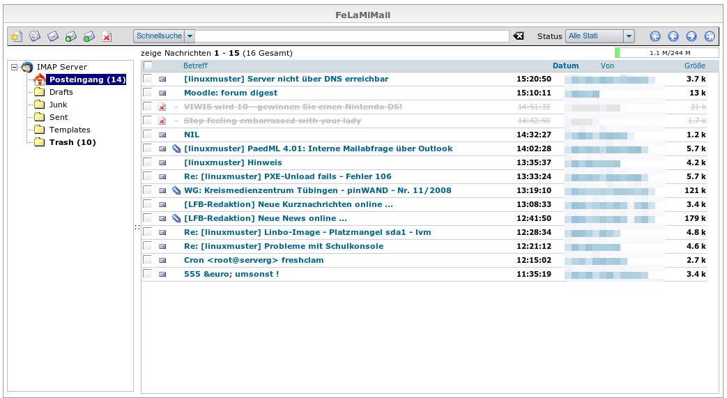 E-Mail Konten auf dem Server lassen sich in eGW mit FeLaMiMail verwalten, das über IMAP bzw. IMAPs Zugriff auf die Konten der Benutzer hat.