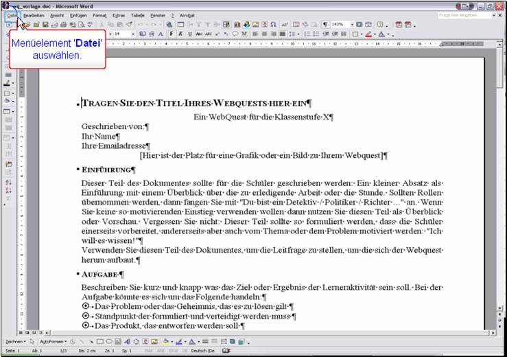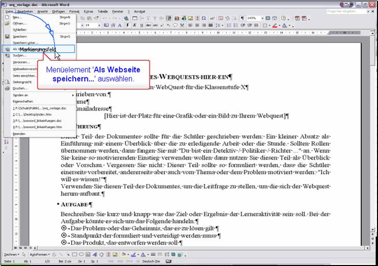 Die Darstellung Ihres Dokumentes in Word wird nun verändert. Da die Seite aber gespeichert ist, können Sie Word nun beenden.