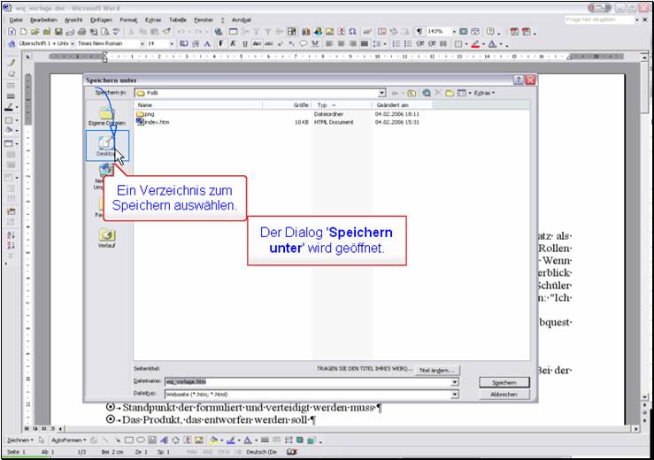 Wählen Sie das Verzeichnis, in dem Sie die Datei speichern wollen.