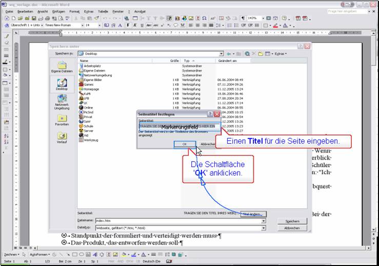 Sobald Ihre Seite fertig geschrieben ist - also alle notwendigen Texte und Links enthält - verfahren Sie wie folgt: