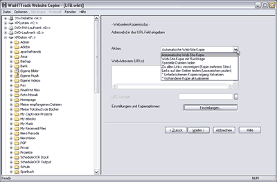 HTTrack automatisch [*Vorhandene Kopie aktualisieren]. Tragen Sie dann in
