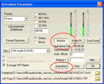 Zur besseren Kontrolle der Aufnahme empfiehlt es sich den "Monitor"