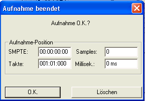 Ein Klick auf den Button "Aufnahme" öffnet dieses Fenster. Es
