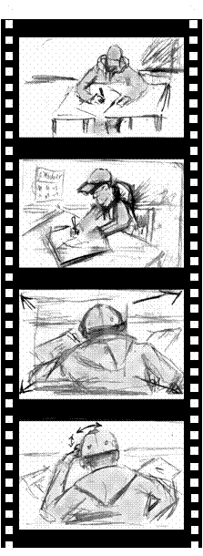 Bewegungen werden durch Pfeile dargestellt, ebenso Schwenks, Kamerafahrten oder Überblendungen. Die einzelnen Skizzen sollten zügig und grob ausgeführt werden. Achten Sie dabei darauf, dass die Aussage des Bildes dem Zweck folgt.