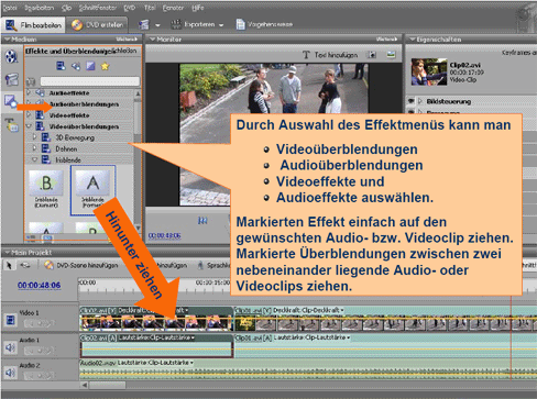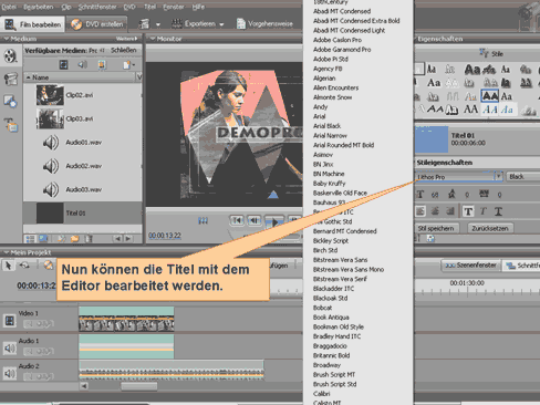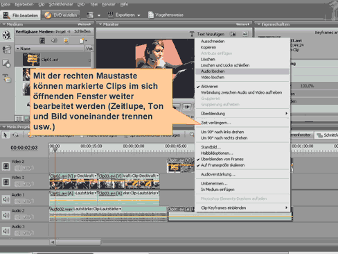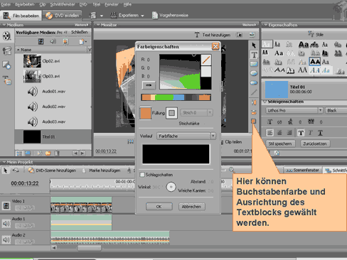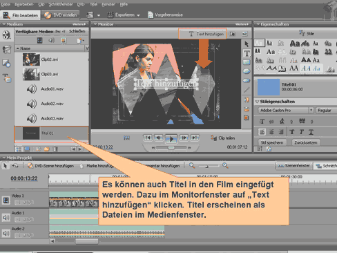 Audiodateien und Videodateien im Schnittfenster bearbeiten, Titel erstellen