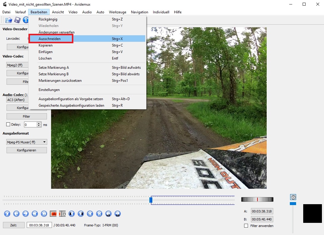 Im nächsten Schritt wird das nicht gewünschte Ende entfernt. Unter dem Reiter "Bearbeiten" gibt es die Funktion "Ausschneiden". Nach Nutzen dieser, endet das Video mit der ausgewählten Stelle.