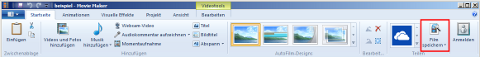 Das Werkzeug für das Erzeugen eines fertigen Films (in der Fachsprache "rendern") befindet sich im Register "Startseite".