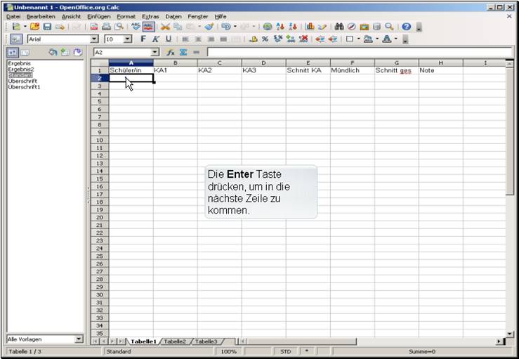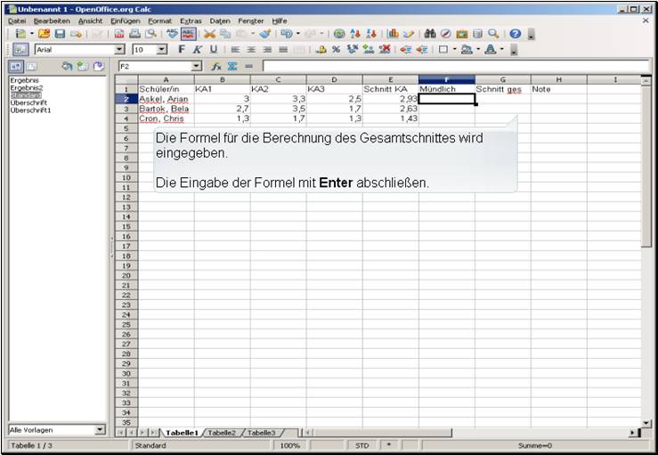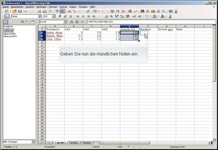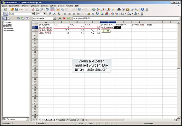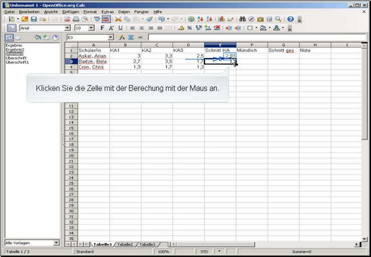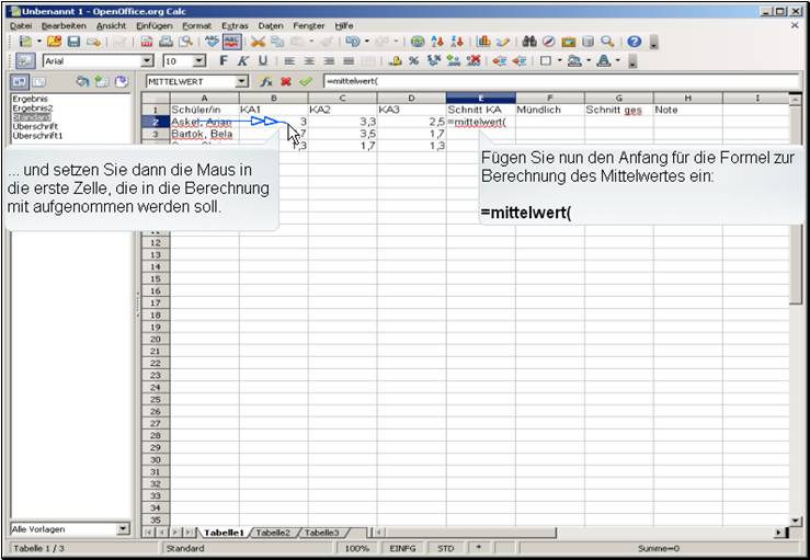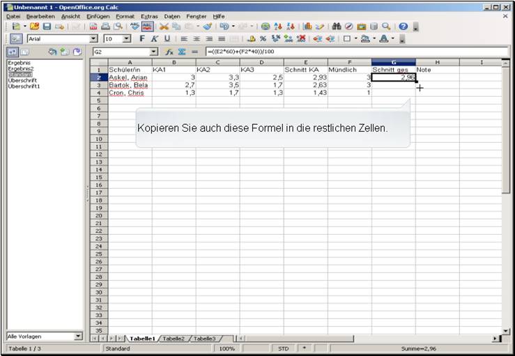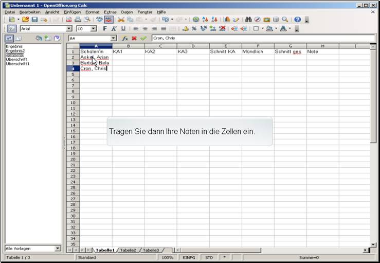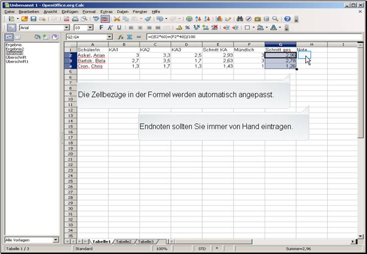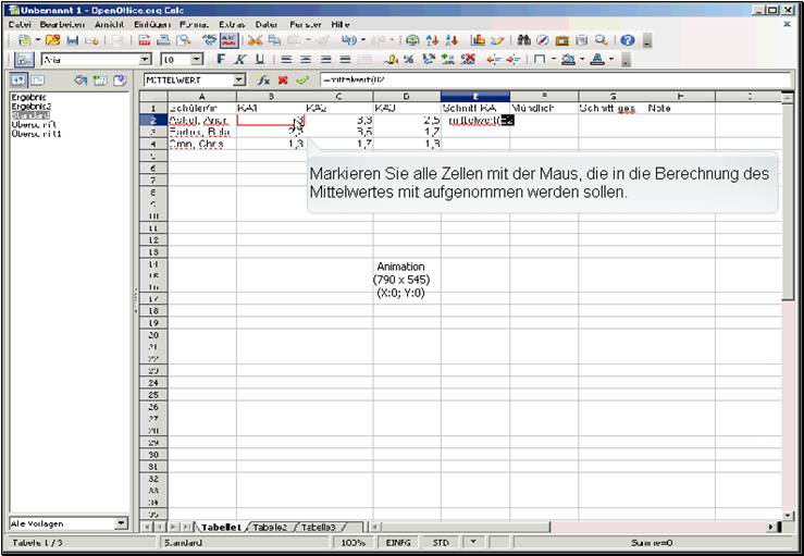 Diese Anleitung als Film:Notenberechnung mit OpenOffice Calc [FLV] [1.5 MB] Diese Anleitung als PDF:
