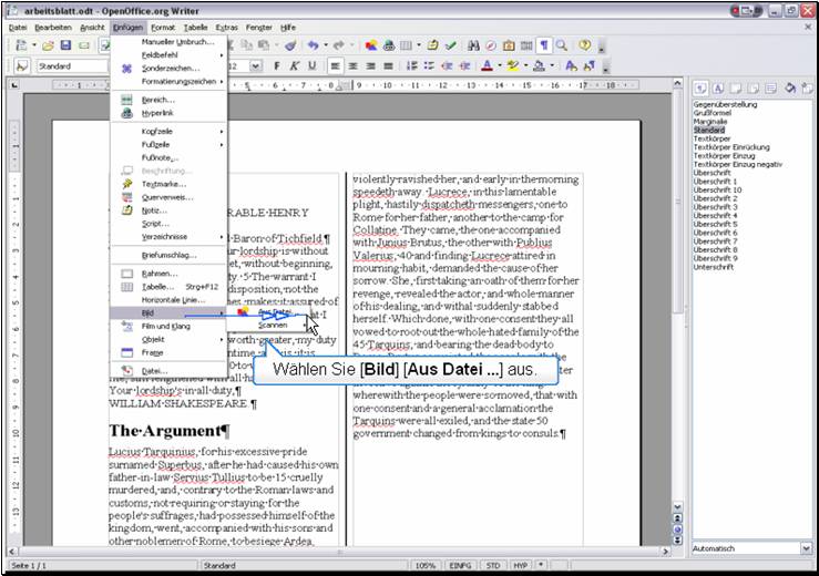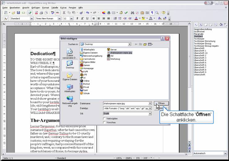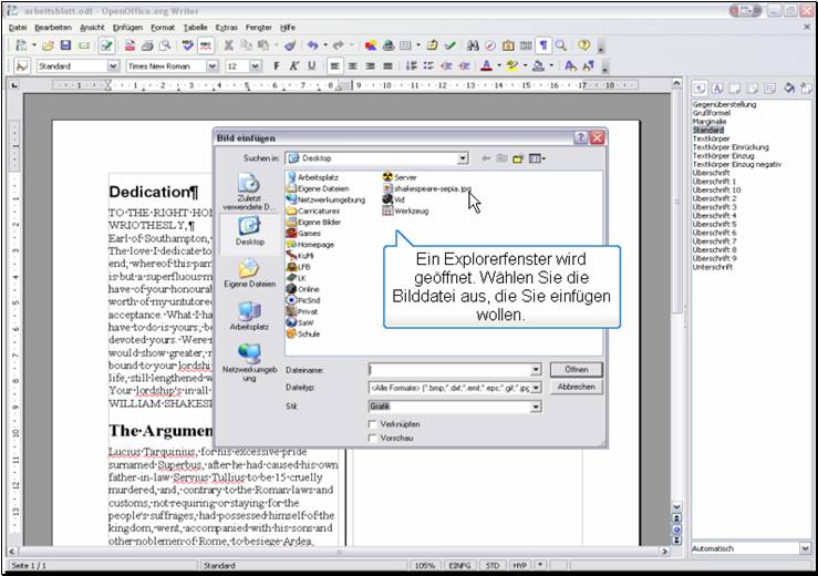 Ein Explorerfenster wird geöffnet. Wählen Sie die Bilddatei aus, die Sie einfügen wollen.