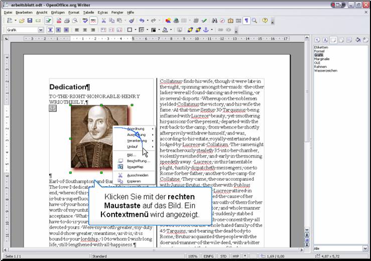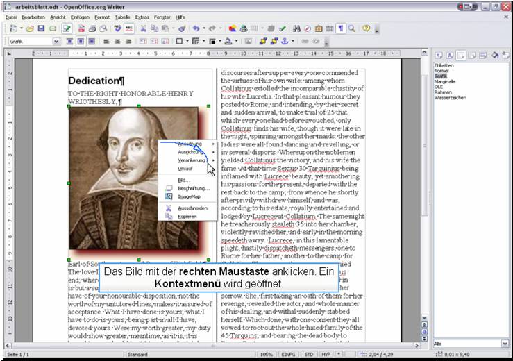 Das Bild mit der rechten Maustaste anklicken. Ein Kontextmenü wird geöffnet.