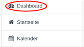 Zu Ihren Kursen gelangen Sie von der Startseite im Block Navigation oberhalb von Dashboard. In der Regel ist die Seite nach dem Login auch das Dashboard.