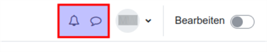 Die Sprechblase symbolisiert Mitteilungen. Klicken Sie darauf, um die Übersicht Ihrer Mitteilungen zu öffnen. Wenn Sie eine oder mehrere Mitteilungen erhalten haben, wird in der Sprechblase eine Zahl angezeigt.