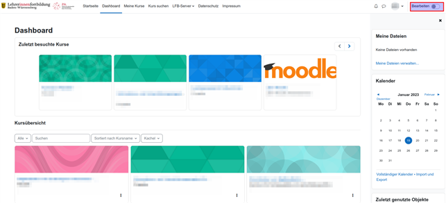 Darüber hinaus haben Sie die Möglichkeit, das Dashboard zu bearbeiten, um es an Ihre Bedürfnisse und Vorlieben anzupassen. Aktivieren Sie hierzu den Schieberegler Bearbeiten.