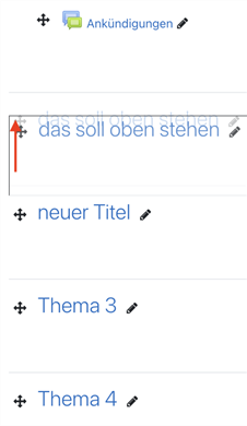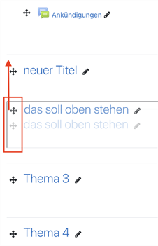 Mit dem Pfeilsymbol kann das gewünschte Thema an die neue Position gezogen werden.