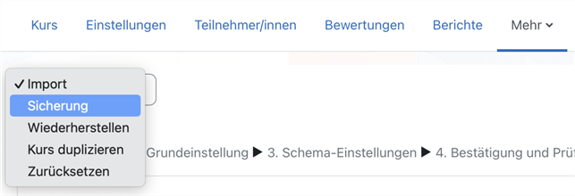 Selbst wenn durch die Administration regelmäßig eine systemweite Sicherung und damit auch die Kurse gesichert werden, sind Trainer/innen für die Sicherung ihrer Arbeit selbst verantwortlich.