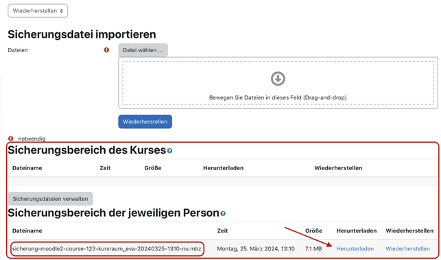 Speichern Sie die Sicherungsdatei auf Ihrem lokalen Rechner ab, indem Sie diese im Sicherungsbereich des Kurses herunterladen.
