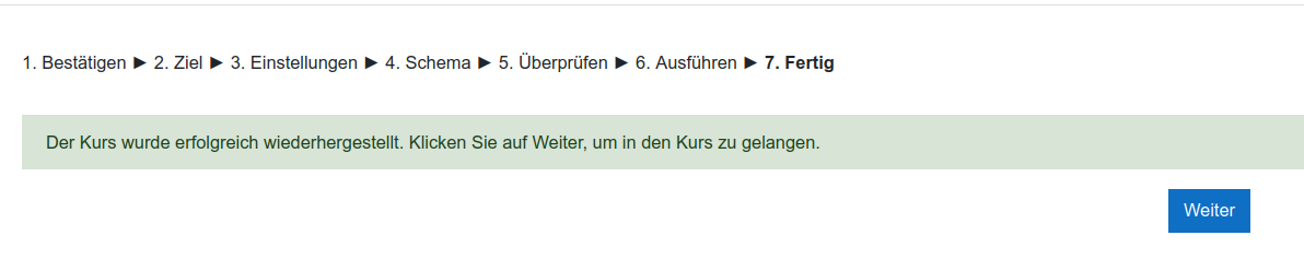 In seltenen Fällen ist der aktuelle Kurs „verbogen“ und man kann eine vor dem Fehler erstellte Kurssicherung zur Behebung des Fehlers wieder herstellen.