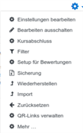 - Melden Sie sich als Trainer an und öffnen Sie in Ihrem Kurs das Zahnradmenü rechts oben.